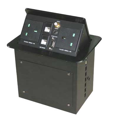 多功能桌面插座為用戶提供了一個緊湊、美觀的桌面信號連接解決方案。它采用簡單易用的接入方式,我們在連接視頻、音頻、計算機視頻、網(wǎng)絡、電話、電源等接口時,輕按連接盒的頂部,連接盒即時釋放機械鎖定器,接口盒面被氣撐式結構平滑打開,完全展現(xiàn)出連接接口面。使用完畢后,只需輕輕按下接口盒蓋,機械鎖定器隨即鎖定連接盒。鎖定后的連接盒與桌面保持齊平,所有接口被巧妙地隱藏起來,盒面美觀整潔并與桌面渾然一體。