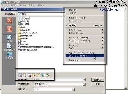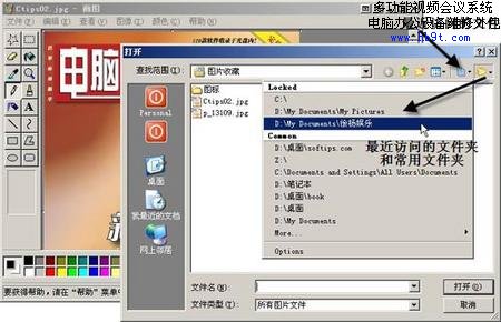 在Windows下工作時(shí),總有幾個(gè)文件夾是我們平時(shí)經(jīng)常要去的。但是Windows的文件對(duì)話框只提供了“歷史”、“桌面”、“我的電腦”和“網(wǎng)上鄰居”幾個(gè)選項(xiàng)供我們選擇。安裝Dialogue Box Assistant軟件,在打開(kāi)和保存文件對(duì)話框的工具欄上會(huì)發(fā)現(xiàn)兩個(gè)小圖標(biāo),該軟件會(huì)把最近打開(kāi)/保存過(guò)的文件/文件夾保存起來(lái),(如圖9)所示,只要單擊最右邊的按鈕就可以看到我們最近訪問(wèn)過(guò)的文件夾,單擊就會(huì)馬上切換到相應(yīng)的文件夾下。單擊對(duì)話框工具欄Dialogue Box Assistant左邊小按鈕會(huì)顯示最近打開(kāi)過(guò)的文件。