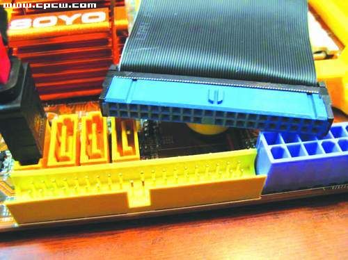 主流IDE接口速度為133MB/s,同樣靠顏色和防呆缺口為它的安裝保駕護(hù)航現(xiàn)在的IDE連接線一般為三個(gè)接頭,兩個(gè)接頭接IDE設(shè)備,一個(gè)接頭接主板,達(dá)到數(shù)據(jù)傳輸?shù)哪康囊话銇碚f,藍(lán)色接頭接主板,其余兩個(gè)接頭接設(shè)備而且為了不讓我們接錯(cuò),IDE接口還設(shè)計(jì)了兩個(gè)防呆缺口(如圖4)對(duì)應(yīng)安裝就不會(huì)犯錯(cuò)